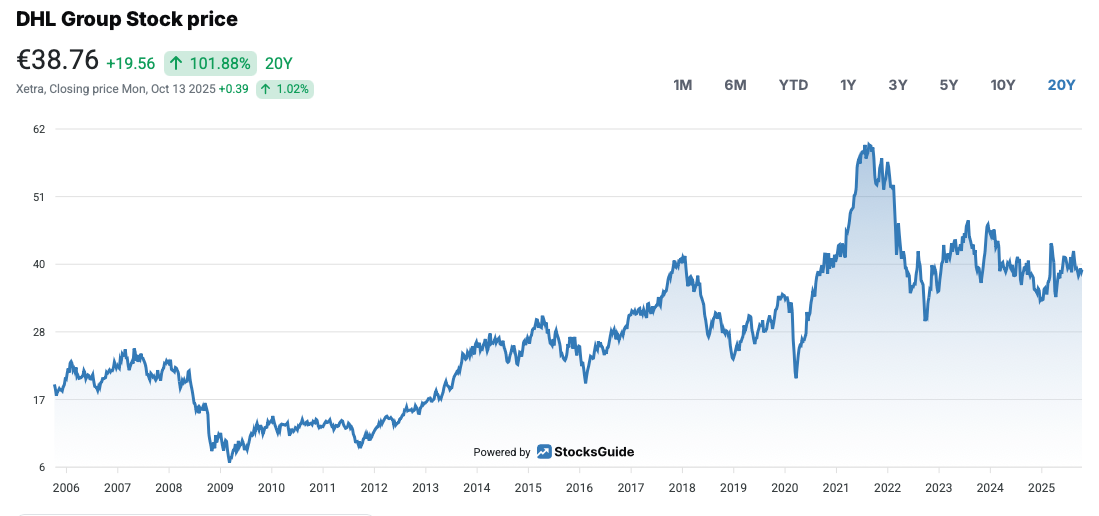 Alongside UPS and FedEx, the DHL Group is one of the world's leading logistics providers. More than 600,000 employees now work for the Bonn-based group around the world, which has transformed its former national letter monopoly into a competitive business model with a bright future. Strong online retail in particular has laid the foundation for this positive development. The company offers a wide range of services along the entire supply chain – from letter and parcel delivery, express delivery, and freight transport to contract logistics and supply chain management. The year 2025 shows that the DHL Group is stable even in a volatile economic environment. Continued demand in online retail continues to provide support, enabling the company to benefit from structural demand. DHL Group is not only an important link in the supply chain – in many ways, it represents the supply chain itself.