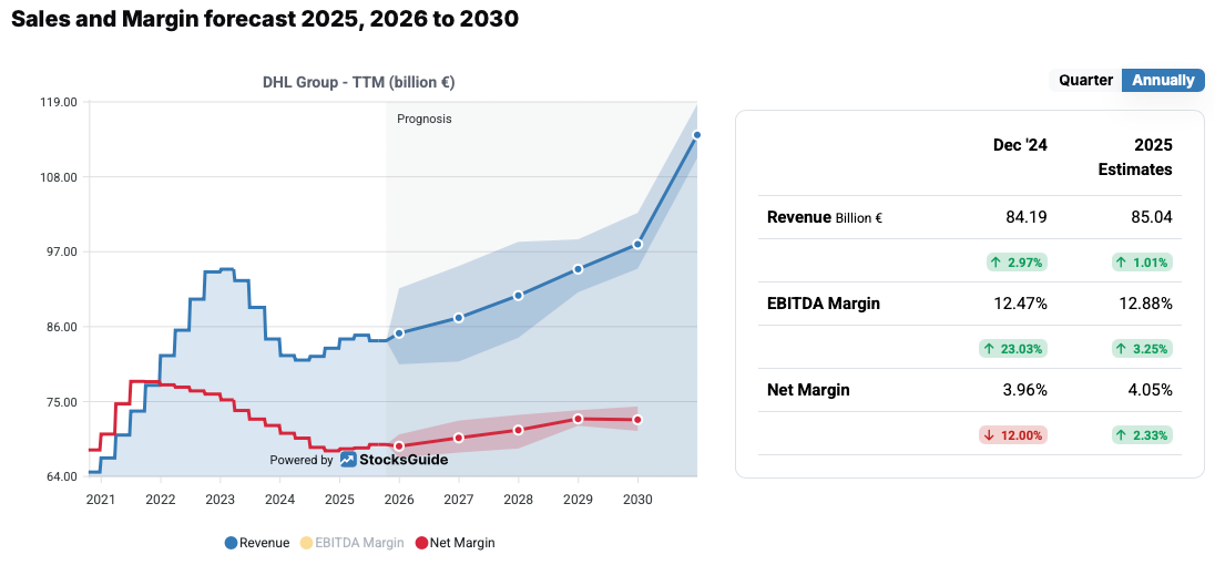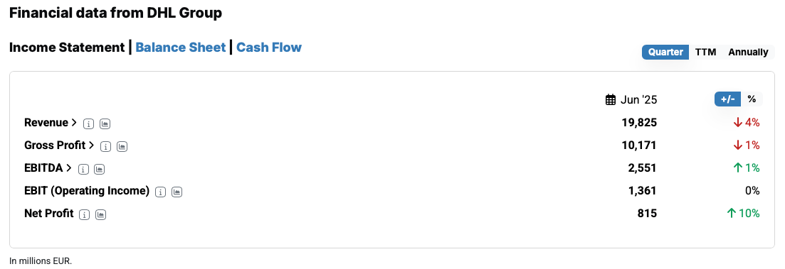 Despite a difficult macroeconomic environment, DHL Group presents itself as a robust and reliably managed group. In recent quarters, the company has shown that it can increase its profitability even under adverse conditions. This is attributable to consistent cost management, a broad positioning, and a clear strategic focus on high-margin growth areas such as express and pharmaceutical logistics.
