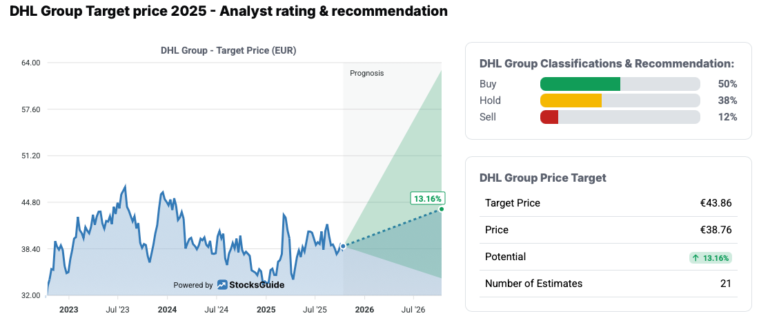 With a current price-earnings ratio of around 13 and an expected value of 12.9 for the coming year, DHL Group stock is moderately valued. The dividend yield of 4.7 percent remains particularly attractive, as it is above average in the current market environment. Combined with a stable distribution policy and a moderate payout ratio, the stock offers investors a convincing earnings profile with long-term predictability – an aspect that makes them particularly interesting for income-oriented investors. The valuation also appears solid from a cash flow perspective: the ratio of enterprise value to free cash flow (EV/FCF) is 10.9, which indicates a fair, slightly below-average valuation compared to other international logistics companies. However, the market could also be pricing in some risks. The DHL Group is currently facing several structural and operational challenges. Continued weakness in global trade and geopolitical tensions are weighing on the transport and freight business. Exchange rate effects and lower trade volumes are having a negative impact on revenue, while rising costs for personnel, energy, and logistics are putting pressure on margins. In Germany, the Group is struggling with declining volumes, increasing cost and competitive pressure, and ongoing labor disputes, particularly in the mail and parcel business. The announced reduction of around 8,000 jobs shows how consistently management is trying to adapt the cost base to the new market environment – but the process also carries risks for service quality and employee satisfaction. Added to this are regulatory uncertainties and trade tensions, which are affecting international logistics flows and making planning more difficult. The number of customer complaints about delivery quality and delays has also risen significantly in Germany recently, indicating operational bottlenecks and structural adjustment pressure. Analysts' outlook for revenue growth remains subdued at around 1 percent for the current year, reflecting the cyclical nature of the business. Nevertheless, the company benefits from its broad geographical diversification and strategic focus on higher-margin segments such as express and pharmaceutical logistics, which are expected to grow above the group average in the medium term.