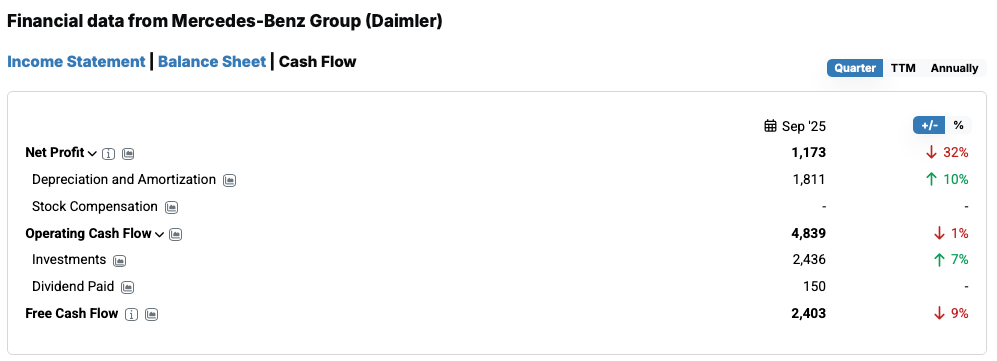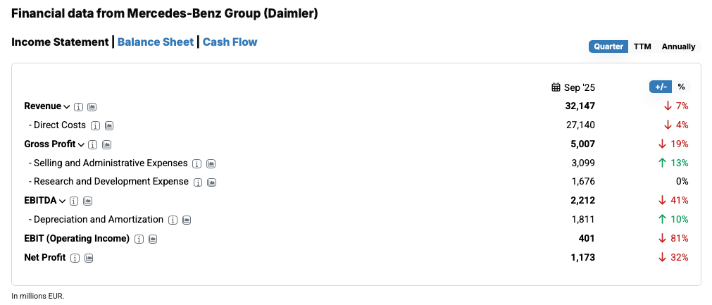The latest Mercedes-Benz quarterly figures from September 2025
