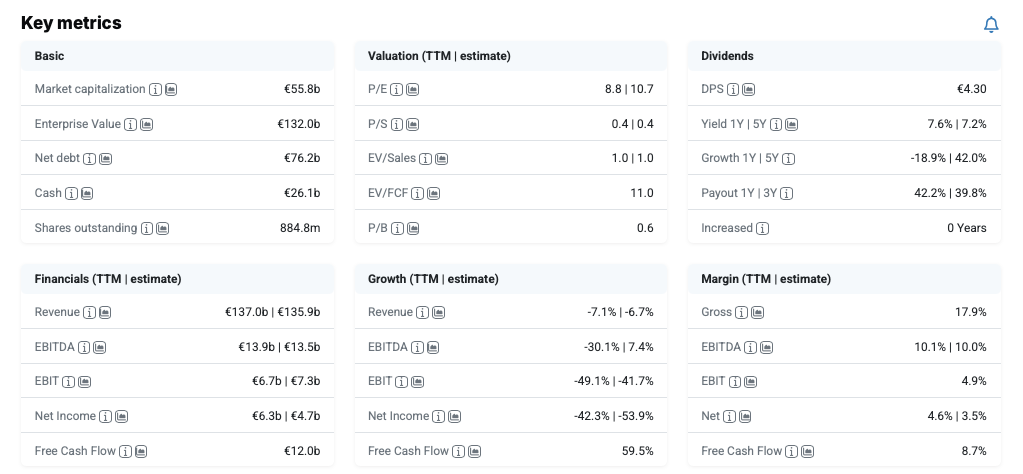 Looking at analysts' forecasts for the group for 2025, this translates into a 6.7 percent decline in sales and a halved net margin of 3.3 percent. However, this should also mark the bottom of the decline. According to analysts, sales will stabilize again in the future at the strong previous year's level of 2023, at 750 billion. Essentially, however, this corresponds to a meager single-digit growth per year.