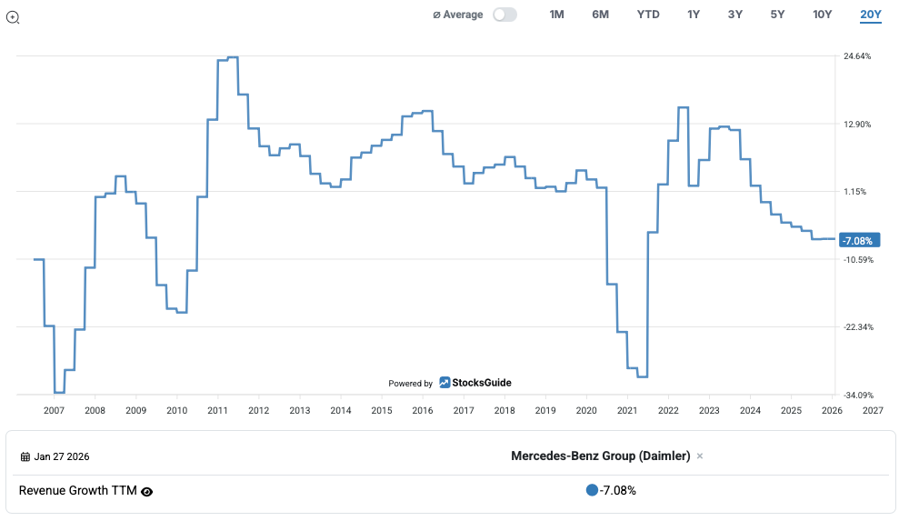 However, the expected sales growth of minus 6.7 percent for the year as a whole should be viewed critically. The comparatively favorable valuation of Mercedes-Benz can be explained less by operational weakness than by several structural and market-related factors that are making investors cautious.