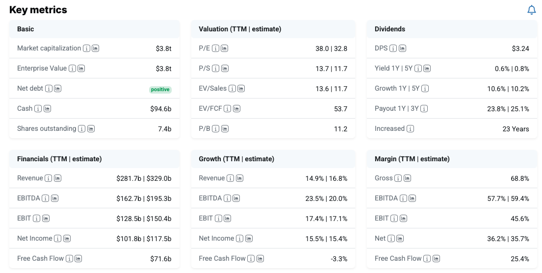 Analysts agree. They estimate revenue of USD 329 billion for 2026, with a slightly lower net margin of 35.7 percent.