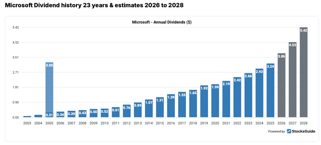 - In the long term, Microsoft offers stable prospects for investors, particularly through continuous dividend increases and strong moats.
