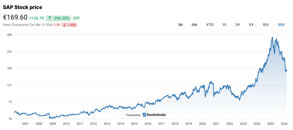 Recently, however, fears of the disruptive impact of AI have been mounting. New software tools from OpenAI and Anthropic impressively demonstrate what AI is capable of. With the release of OpenClaw, it also became clearer how AI agents can function. Many investors realized that these agents could eventually take over many of the functions of SAP software. The stock subsequently corrected sharply and can now be considered inexpensive in a historical context. But is that enough to justify a purchase? The following stock analysis shows how the company is benefiting from these global developments, what opportunities and risks they present, and how SAP is aligning its strategy, particularly in the areas of cloud and AI, to remain competitive in the long term.