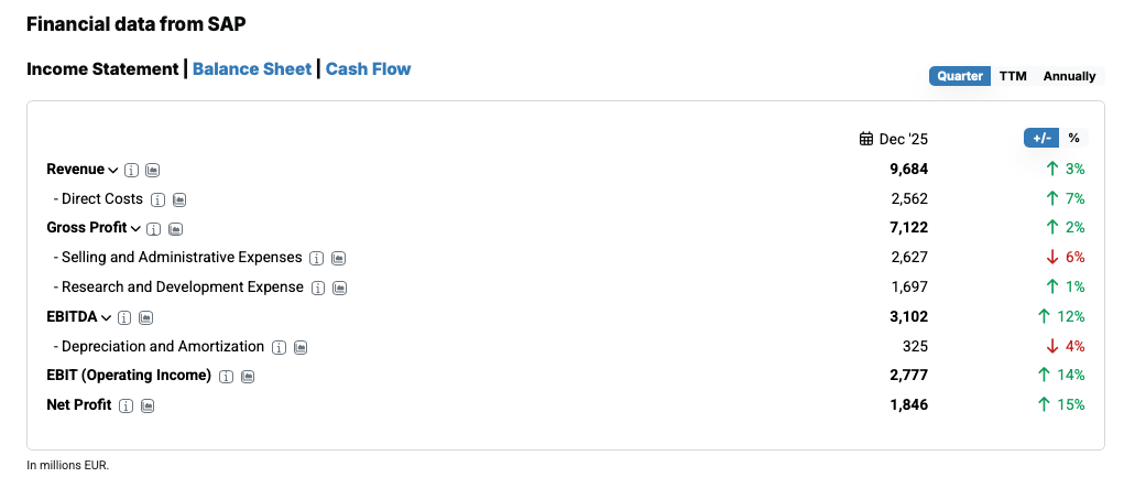 The latest SAP quarterly figures from December 2025