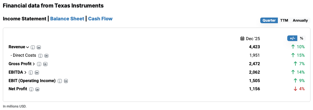 Texas Instruments’ Latest Quarterly Results for December 2025
