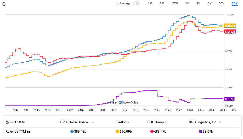 A comparison of the revenue trends of the largest players shows a largely synchronous picture. However, FedEx stands out with its clear outperformance.