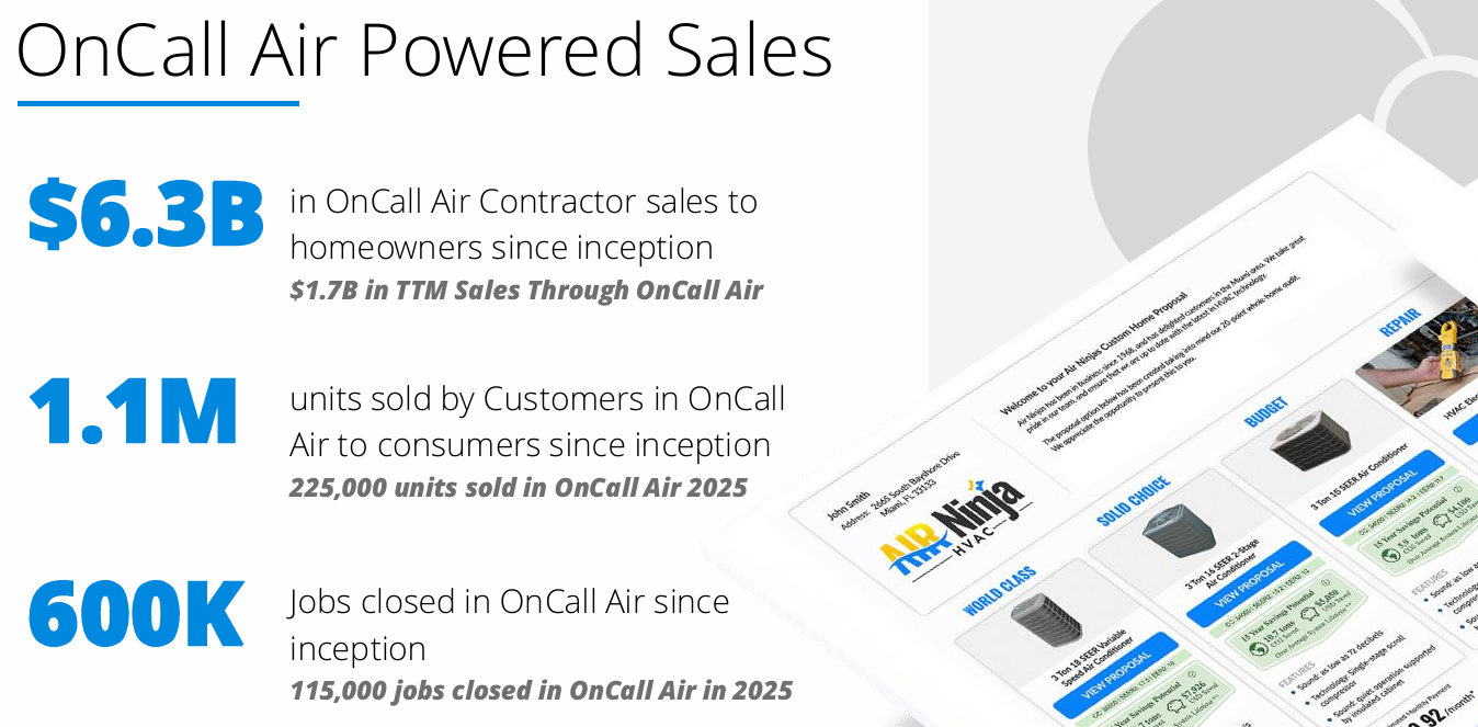OnCall Air helps installers select the right equipment, displays available stock, offers financing options, and provides real-time delivery updates.
