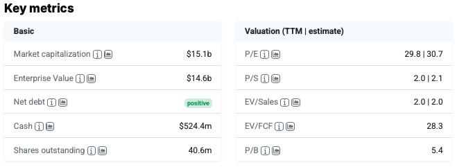 The price-to-earnings ratio (P/E ratio) is currently 30 (based on the last 12 months); based on expected annual earnings, it is 31. This appears too high, as the American company cannot justify such a valuation with low single-digit revenue growth. The enterprise value/sales (EV/sales) ratio of 2.0 also seems too high for a wholesaler.